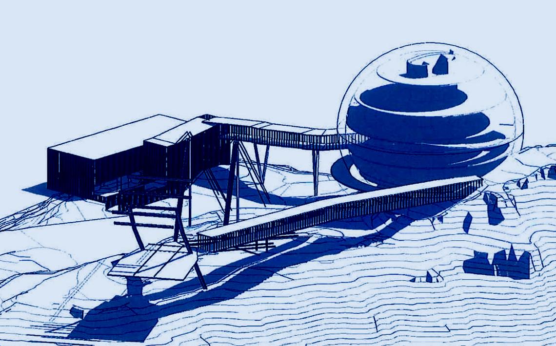 Le concept de ce projet est de créer deux bâtiments et des passerelles formant une liaison et un point de rencontre exceptionnel entre le téléphérique existant (Val Thorens) et celui en cours de réalisation (Orelle). Ces bâtiments sont utilisés comme point de vue privilégié et comme espaces de services (salle de projection, restauration, table panoramique…).